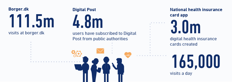 In general, the population frequently uses public digital services. Part of the success is due to Denmark’s introduction of mandatory digital self-service in 2015. This has meant that solutions such as Digital Post and e-Boks have largely replaced physical mail from public authorities. In the same way, the digital citizen services (Borger.dk, etc.) have gained ground, while there are fewer physical citizen services centres. The Danish Agency for Digital Government is responsible for many of the public digital services, including the app for the national health insurance card, which was launched in 2021.