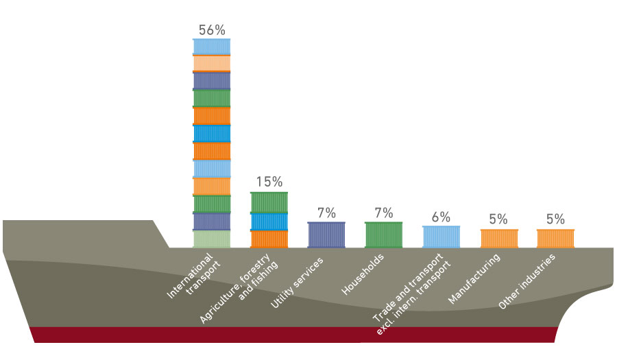 International transport is a substantial part of the Danish economy, and for that reason, the emissions from fuel for Danish transport operations abroad account for a significant share of total emissions. This applies in particular to Danish cargo ships, but also aircraft and lorries.